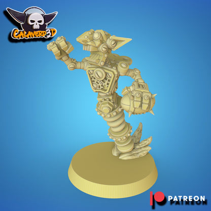 Enter the mayhem of mechanical mischief with the Botlins, a chaotic and creative Goblin team designed by Calaverd3D for Blood Fantasy Football Bowl! These steampunk-inspired gobbos bring wild antics, explosive plays, and unpredictable strategies to the pitch—perfect for coaches who like a bit of beautiful chaos.