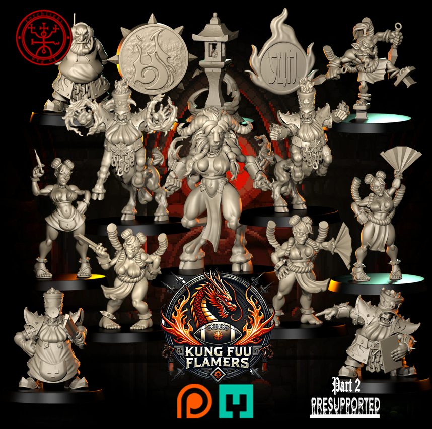 Harness the power of fire and martial arts with The Kung Fu Flamers, a fearsome Chaos Dwarf team designed by Torchlight Models for Blood Fantasy Football Bowl! Combining disciplined combat techniques with brute strength, this team is ready to dominate the pitch with a unique fighting style.